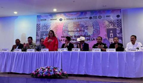 En la capacitación estuvieron presentes los 60 presidentes municipales con su director de Seguridad, además autoridades estatales, de la Secretaría de la Defensa Nacional (Defensa) y Guardia Nacional (GN), entre otras.