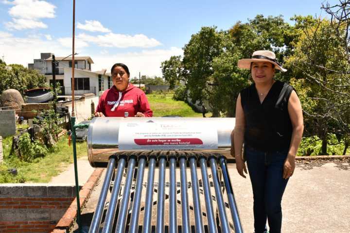 Un total de 70 familias tlaltelulquenses recibieron el apoyo de la Secretaría del Bienestar con igual número de Calentadores Solares, una gestión directa de la presidenta Municipal, Rocío Meléndez Pluma, quien constató la instalación de los equipos en las casas de los beneficiarios.