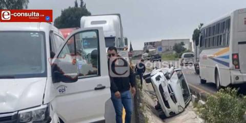 Un tráiler que circulaba con dirección a Tlaxcala embistió a varios vehículos la mañana de este miércoles sobre la autopista Apizaco-Tlaxcala, a la altura de San Esteban Tizatlán, provocando una carambola que dejó al menos tres personas lesionadas.