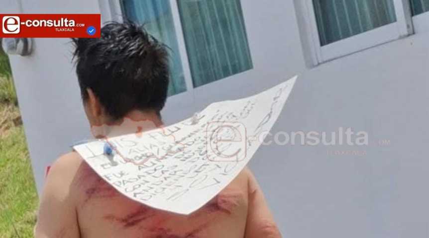 La tarde de este martes, en la zona limítrofe entre Tetla y Apizaco, un hombre fue golpeado por varias personas y posteriormente exhibido con un cartel en la espalda.