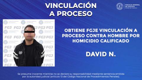 Derivado del trabajo realizado por el Ministerio Público, la Fiscalía General de Justicia del Estado (FGJE) obtuvo la vinculación a proceso en contra de David N., por el delito de homicidio calificado.