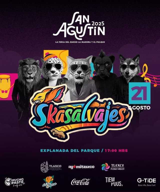La música y la energía de Skasalvajes llegan a Tlaxco este jueves 21 de agosto como parte del programa de la Feria de San Agustín 2025, uno de los eventos más esperados del año en la región.