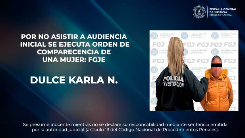 Tras realizar las indagatorias correspondientes, la Policía de Investigación llevó a cabo labores de búsqueda y localizó a la mujer en el municipio de Apetatitlán, donde fue debidamente notificada de la orden de comparecencia para la audiencia inicial.