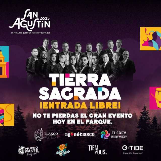 Este Sábado 23 de agosto, La Feria San Agustín 2025 sigue encendiendo el corazón de Tlaxco y este viernes lo hará con un espectáculo imperdible: la presentación en vivo de Tierra Sagrada, una de las agrupaciones más reconocidas del regional mexicano.