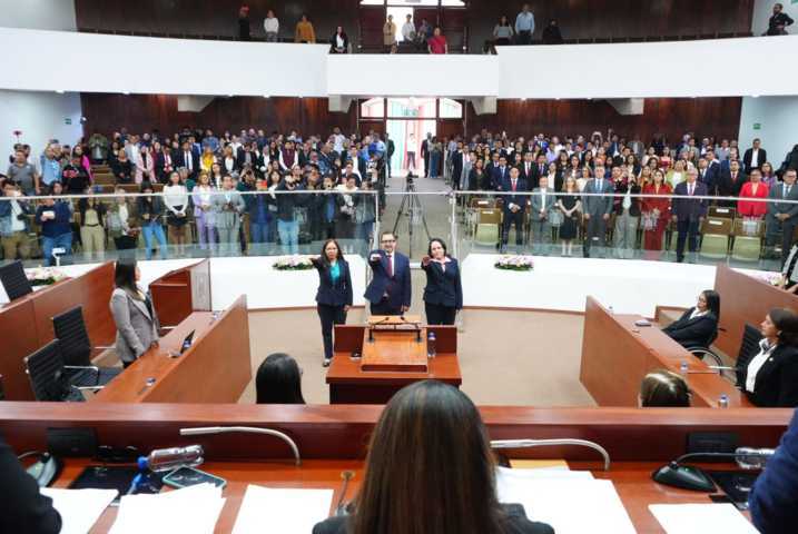 Para el Tribunal de Conciliación y Arbitraje (TCyA) asumieron funciones Alejandra Cosetl, Águeda Zempoalteca Pérez y Paola Sosa Vargas, mientras que en el Órgano de Administración Judicial rindió protesta Sonia Lilian Rodríguez Becerra, designada directamente por el Poder Legislativo.
