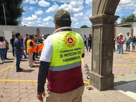 En las instalaciones de la Presidencia Municipal, la Coordinación de Protección Civil de Yauhquemehcan inició en punto de las 12:00 horas el Simulacro de Sismo en el inmueble, con la hipótesis de movimiento telúrico de 8.1 grados con epicentro en Lázaro Cárdenas Michoacan.