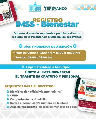 Durante septiembre podrás realizar tu registro en la Presidencia Municipal de Tepeyanco.