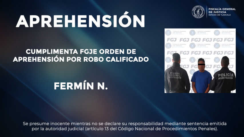 Agentes de Investigación llevaron a cabo las labores de búsqueda y el investigado fue aprehendido en el municipio de Teolocholco, donde le hicieron saber los derechos que le asisten como persona detenida y el motivo de su detención.