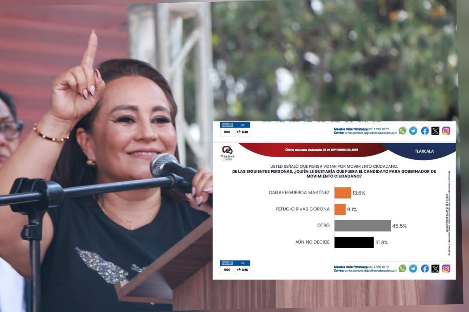 En la encuesta que difundió la empresa Masive Caller, en el apartado de MC en el que pregunta quien le gustaría fuera su candidato al Gobierno del Estado, ubicó a Danae Figueroa como puntera, seguida por el ex diputado local Refugio Rivas Corona.