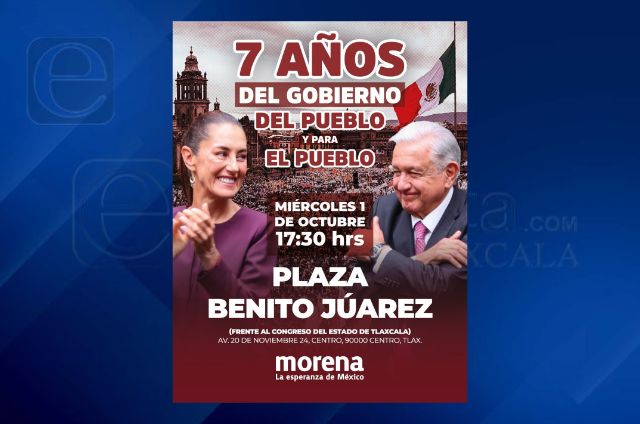 El evento se llevará a cabo este miércoles 1 de octubre a las 17:30 horas en la Plaza Benito Juárez, frente al Congreso del Estado de Tlaxcala, donde se recordará el camino recorrido, los avances alcanzados y se reafirmará el compromiso de seguir construyendo, juntas y juntos, el segundo piso de la transformación.