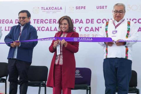 La gobernadora Lorena Cuéllar Cisneros encabezó la entrega de la tercera etapa de construcción de la Universidad Intercultural de Tlaxcala (UIT) en el municipio de Ixtenco y la presentación del libro: “Tlaxcala Flor y Canto: Tlaxkallan Xochitl Wan Kwikatl”, que será distribuido a estudiantes del quinto y sexto grado de escuelas de educación indígena.