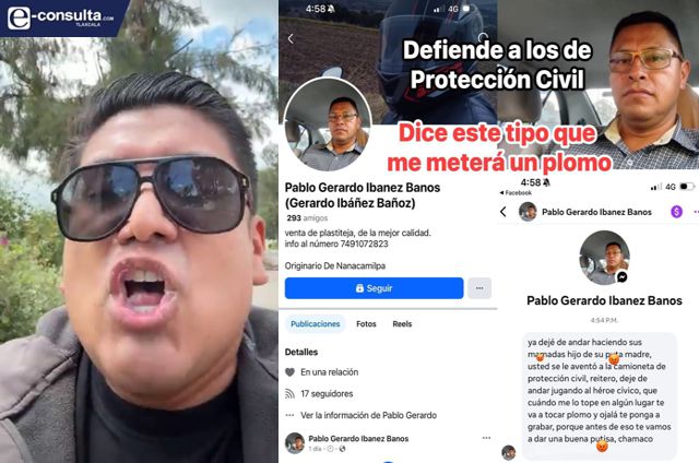 Más tarde publicó en el Facebook que recibió amenazas de alguno de los elementos de protección civil en donde le advirtieron que le meterían un plomo.