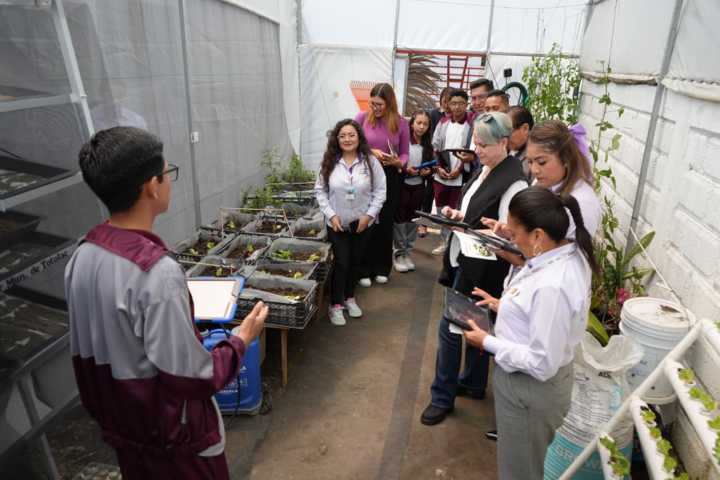 Durante el recorrido, la funcionaria colombiana estuvo acompañada por la directora de Educación Básica de la Secretaría de Educación Pública del Estado y de la Unidad de Servicios Educativos del Estado de Tlaxcala (SEPE-USET), Alma Rosa Sampedro Reyes, en representación del secretario de Educación Pública del Estado, Homero Meneses Hernández, con quien conoció los talleres de robótica, el invernadero escolar y el Modelo de Naciones Unidas, además de la historia, logros y alcances de este plantel que se distingue por su modelo educativo integral.