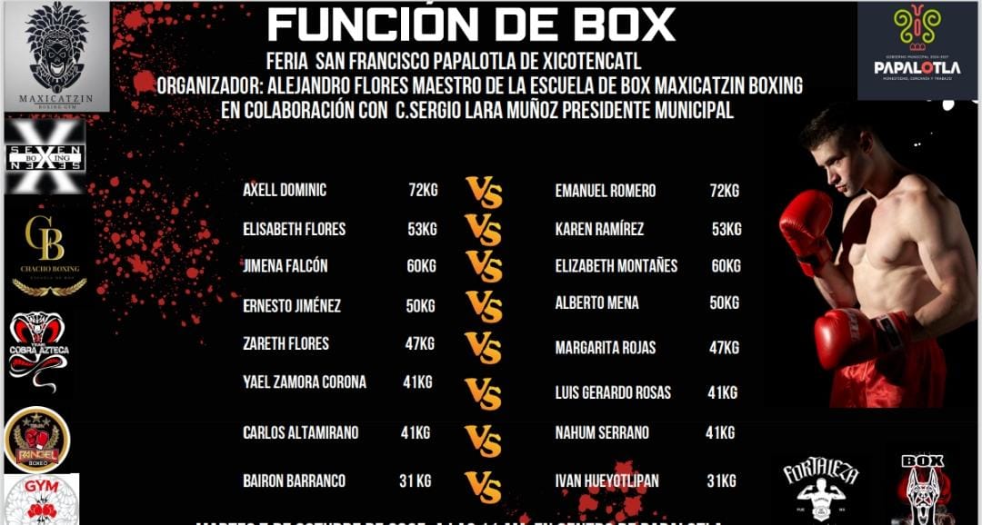 Los aficionados al boxeo y el público en general están invitados a asistir al centro de Papalotla este martes 7 de octubre para disfrutar de esta emocionante jornada pugilística que enaltecerá las festividades patronales del municipio.