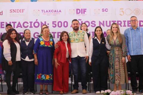 La gobernadora, Lorena Cuéllar Cisneros; la presidenta honorífica del Sistema Estatal para el Desarrollo Integral de la Familia (Sedif), Mariana Espinosa de los Monteros Cuéllar, y la titular del Sistema Nacional DIF (Sndif), Rocío García Pérez, inauguraron la muestra gastronómica “500 años nutriendo con sabor”, en el marco de la conmemoración del Día Mundial de la Alimentación 2025 y de la celebración por los 500 años de la Fundación de la Ciudad de Tlaxcala.