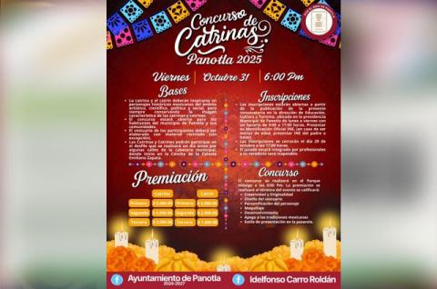 El H. Ayuntamiento de Panotla, que encabeza el presidente municipal Idelfonso Carro Roldán, a través de la Dirección de Educación, Cultura y Turismo, invita a la ciudadanía a participar en el Concurso de Catrinas Panotla 2025, una actividad que busca preservar y promover nuestras tradiciones mexicanas.