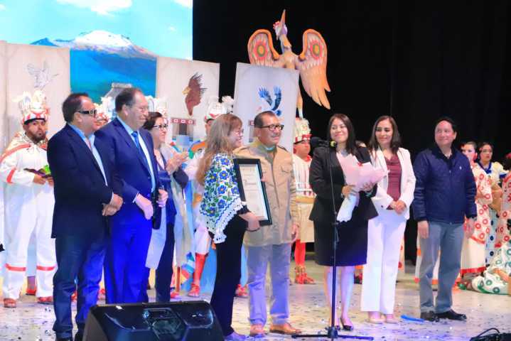 El Doctor Ortiz entregó un reconocimiento a la Maestra Amalia Díaz, quien con una propuesta artística sensible y poderosa conmovió al público al transmitir la esencia del origen, la historia y la identidad cultural de Tlaxcala.