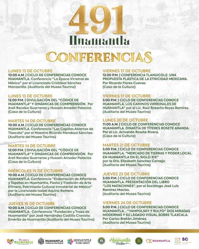 Como parte de las actividades conmemorativas por el 491 aniversario de la fundación de Huamantla, el H. Ayuntamiento, a través de la Dirección de Turismo, Cultura y Desarrollo Taurino, encabezada por el Lic. Marco Antonio Galindo Vallejo llevará a cabo un Ciclo de Conferencias que tiene como objetivo difundir el valor histórico, cultural y social del municipio, fortalecer el sentido de pertenencia y promover el diálogo entre ciudadanía y especialistas.