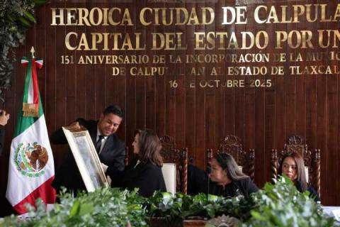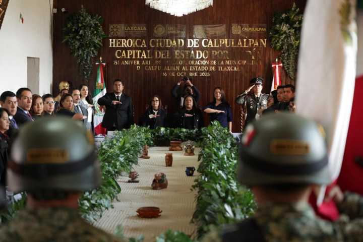 En sesión extraordinaria pública y solemne, representantes de los Poderes Ejecutivo, Legislativo y Judicial conmemoraron el 151 aniversario de la incorporación del municipio de Calpulalpan a Tlaxcala, donde la gobernadora Lorena Cuéllar Cisneros destacó que su anexión constituye un ejemplo temprano de autodeterminación, al tratarse de una decisión tomada con dignidad y convicción.