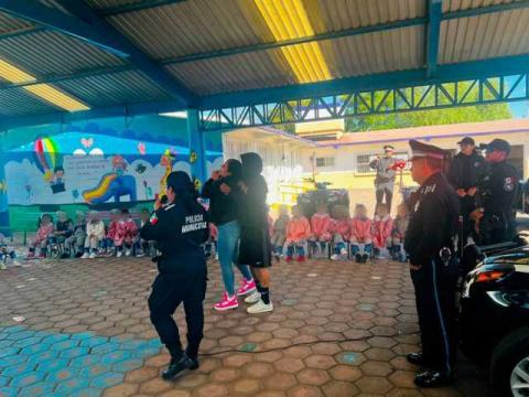 Con el objetivo de concientizar sobre el rol de la seguridad y fomentar la cultura de paz desde temprana edad, la Dirección de Seguridad Pública, Vialidad y Tránsito Municipal realizó una jornada educativa enfocada en promover valores cívicos entre estudiantes de nivel preescolar