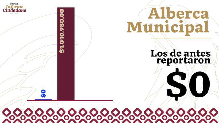 Ante miles de personas, el alcalde informó que, solo en lo que va de su gobierno, la Alberca Municipal registró ingresos por un millón 10 mil 980 pesos, mientras que en la administración pasada no se reportó ni un solo peso.