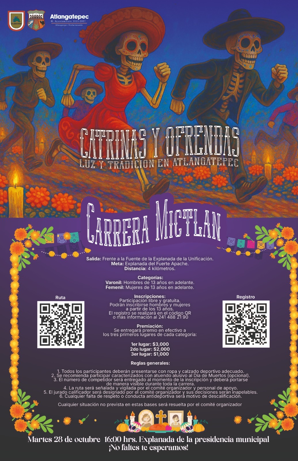 #CarreraMictlán #CatrinasYOfrendas #AtlangatepecActivo #TradiciónYDeporte #DíaDeMuertos #Atlangatepec