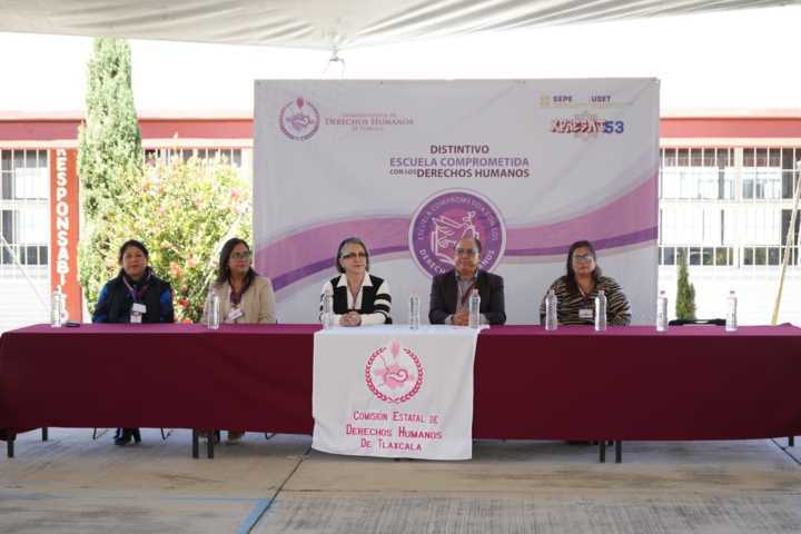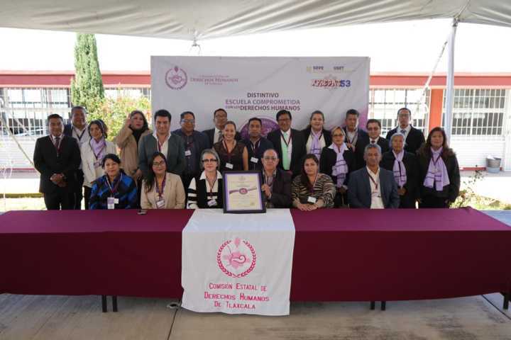 La Secundaria Técnica Núm. 53 “Matlalcueyetl”, ubicada en Loma Florida, municipio de Apizaco, recibió el distintivo “Escuela Comprometida con los Derechos Humanos”, otorgado por primera ocasión por la Comisión Estatal de Derechos Humanos de Tlaxcala (Cedht) a una institución educativa que impulsa una nueva forma de enseñar en favor de la comunidad escolar.