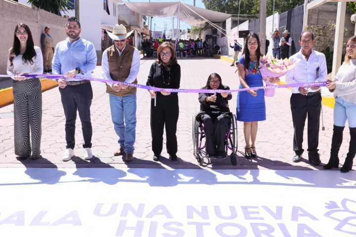 La gobernadora Lorena Cuéllar Cisneros entregó la primera etapa de la sustitución de pavimento con adoquín, alcantarillado sanitario y alumbrado público en la calle Los Misterios, de la comunidad de San José Tetel, municipio de Yauhquemehcan, con lo que demuestra su compromiso de ejecutar obras que transformen la vida de las comunidades.