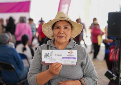 La Presidenta de México, Claudia Sheinbaum Pardo, a través de la Secretaria de Bienestar, al momento ha entregado un millón 349 mil 462 tarjetas de la Pensión Mujeres Bienestar a mexicanas entre 60 y 64 años que recibirán un apoyo bimestral de 3 mil pesos, por lo que Tlaxcala aporta con la entrega de 10 mil 559 medios de pago.