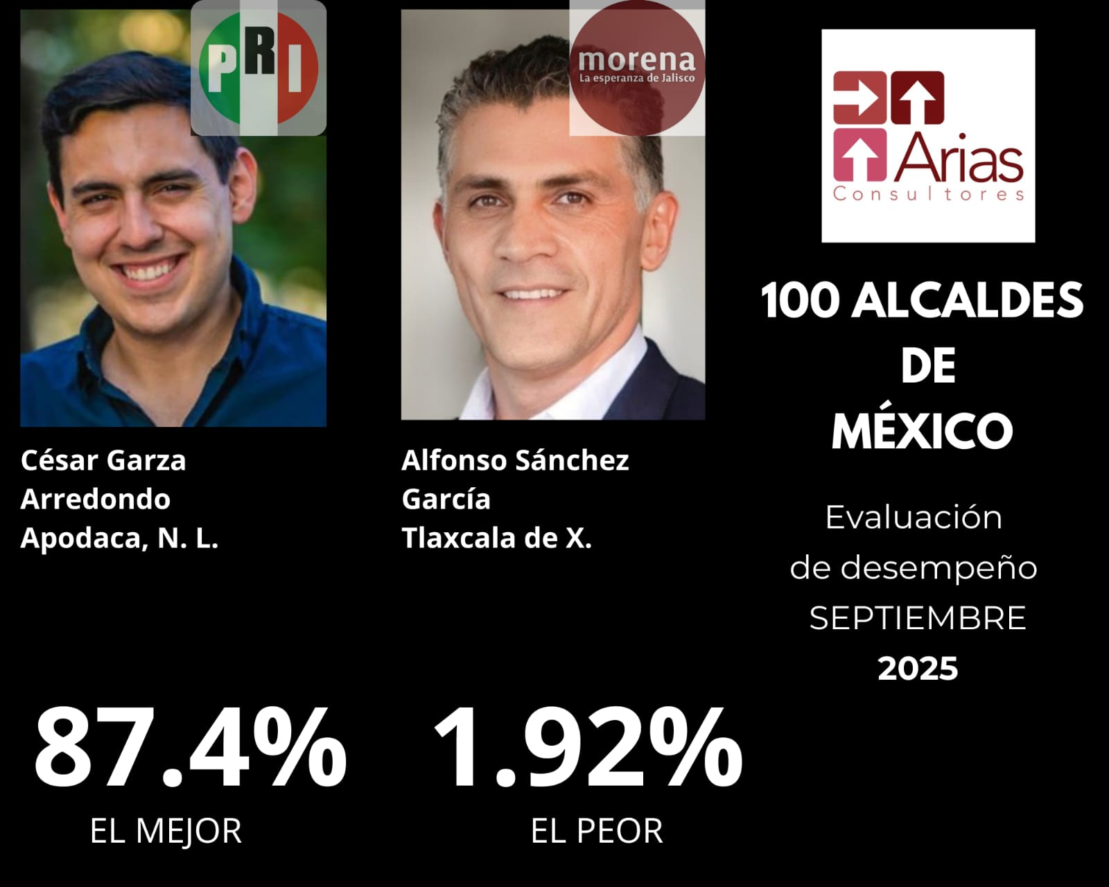 En la evaluación realizada por Arias Consultores, titulada "Evaluación 100 Alcaldes - Septiembre 2025", el alcalde de Tlaxcala de Xicohténcatl, Alfonso Sánchez García, de MORENA, ocupa la “posición 100 de 100”, el último lugar en el ranking nacional de alcaldes de México. Esta calificación se basa en una encuesta aplicada a 17,101 usuarios de Facebook en las 32 entidades federativas del país, entre el 26 de septiembre y el 1 de octubre de 2025, midiendo la aprobación pública en función de las prioridades ciudadanas en servicios municipales.