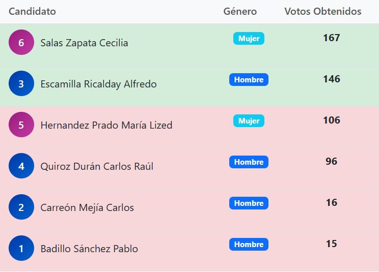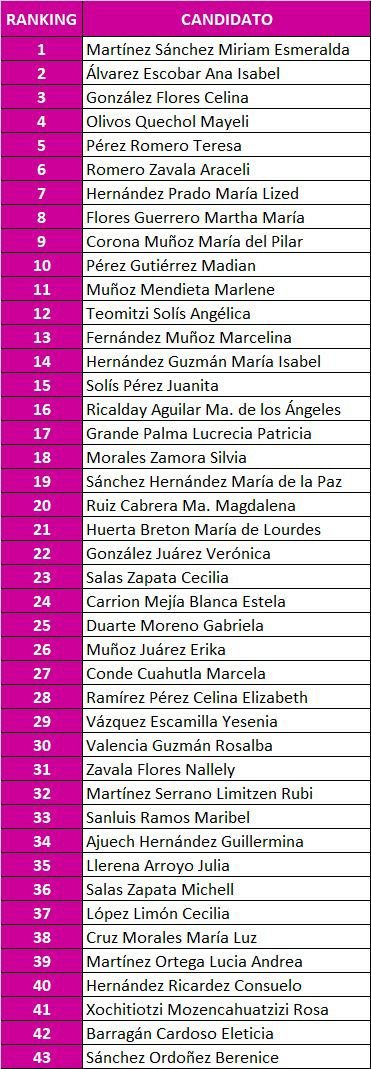 En cuanto al Consejo Nacional fueron electas y electos  las dos primeras lugares mujeres y los dos primeros lugares hombres.