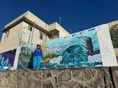 Fueron 15 metros de una pared llena de simbolismos, los que se pintaron inspirados en el agua y la naturaleza, en las que además se expresa la fragilidad e importancia de la naturaleza, de ahí, la urgencia de hacer uso responsable de los recursos.