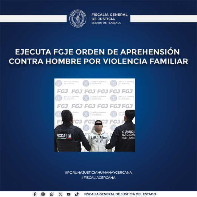 Una vez obtenida la orden de aprehensión, elementos de la Policía de Investigación realizaron las labores de búsqueda y lograron localizar al hombre en el municipio de Huamantla. Ahí, se le informó sobre los derechos que le asisten como persona detenida y el motivo de su aprehensión.