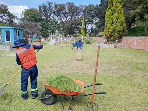La Dirección de Servicios Públicos Municipales será la encargada de realizar las labores de mantenimiento de los Panteones de la demarcación. Los trabajos consisten en actividades de deshierbe, retiro de escombros, recolección de basura y limpieza de pasillos y áreas comunes, con el objetivo de ofrecer espacios dignos a los visitantes en las próximas fechas “Día de Muertos”. Por su parte la Dirección de Agua Potable y Alcantarillado se encargará de verificar que se cuente con el vital liquido en cada uno de los cementerios del municipio.