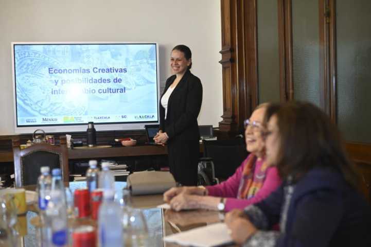 En la reunión, se presentó el plan de trabajo “Economías Creativas y Posibilidades de Intercambio Cultural”, donde se destacaron los avances que ha logrado Tlaxcala en el impulso al talento artístico, la innovación y el desarrollo de las industrias culturales.