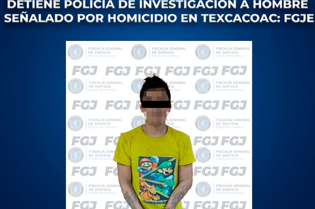 Como resultado de los trabajos de inteligencia realizados por la Policía de Investigación, la Fiscalía General de Justicia del Estado (FGJE) aprehendió a Juan Alberto N., alias “Samarripa”, por el delito de homicidio calificado, ocurrido en Chiautempan.