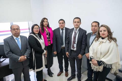 Los administradores del OAJ, Sergio Pérez George, Presidente; Sonia Lilian Rodríguez Becerra; Raymundo Amador García; y Germán Mendoza Papalotzi, fueron recibidos por la Jueza Rosa Areli Zamora Pluma, así como por el personal jurisdiccional que labora en el Juzgado Familiar de este distrito judicial.