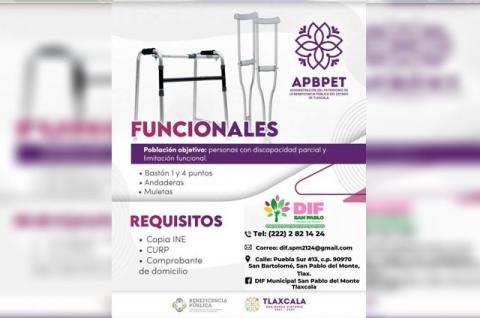El Ayuntamiento de San Pablo del Monte, a través del Sistema Municipal DIF, invita a las personas con discapacidad parcial o limitación funcional a solicitar aparatos funcionales, en coordinación con la Beneficencia Pública del Estado de Tlaxcala.