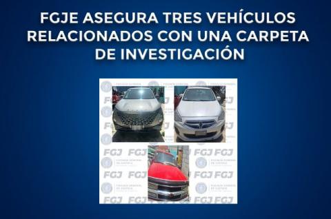 Elementos de la Policía de Investigación de la Fiscalía General de Justicia del Estado (FGJE) aseguraron tres vehículos relacionados con una carpeta de investigación.