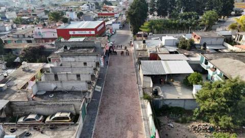 Los trabajos realizados incluyeron la construcción de pavimento de adoquín, guarniciones y banquetas, además de la readecuación de pozos de visita y cajas de operación de válvulas de agua potable, garantizando así una infraestructura integral y duradera.