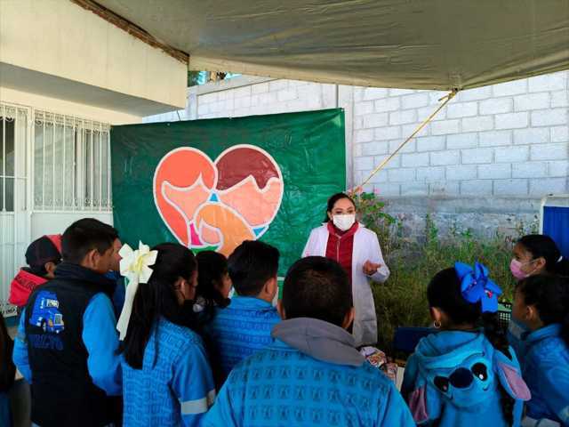 Durante esta jornada, aproximadamente 70 menores y 30 adultos participaron en pláticas y dinámicas orientadas al cuidado de la salud, higiene personal, valores y autocuidado, promoviendo hábitos responsables y estilos de vida saludables desde edades tempranas.