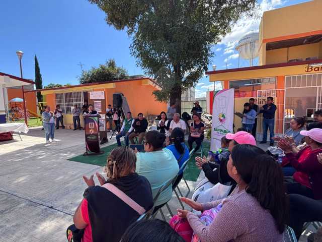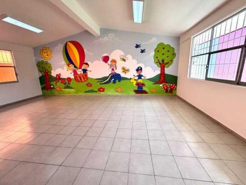A través de la Dirección de Obras Públicas y a petición de padres de familia y dirección de esa institución, se realizaron diversos trabajos como el revocado del salón, instalación eléctrica y aplicación de estuco.