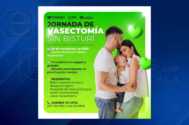 El Gobierno Municipal de Huamantla invita a todos los hombres interesados en participar en la jornada gratuita de vasectomías sin bisturí que organizará la Secretaría de Salud (SESA) el próximo 29 de noviembre en el Centro de Salud Urbano de Huamantla.