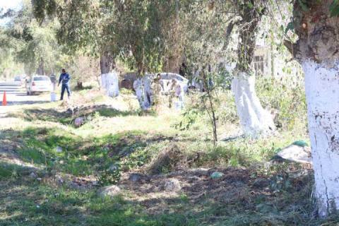 Dicha actividad, consistió en el retiro de maleza y el encalado de árboles que ayudará a protegerlos contra plagas.