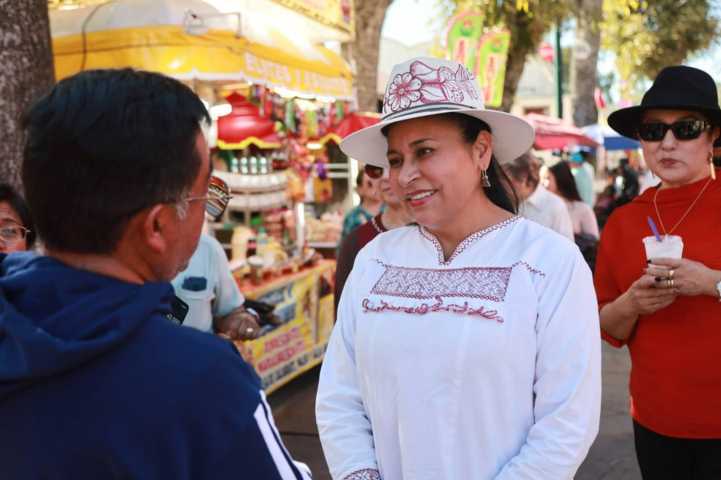 La legisladora se dio tiempo de visitar la Feria y convivir con visitantes, después de fungir como mentora en la elección de integrantes del comité seccional de su natal Cuaula, municipio de Calpulalpan.