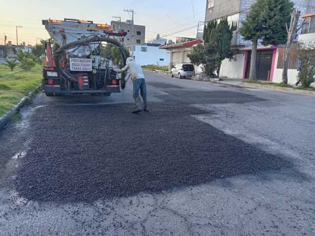 El equipo de bacheo, adscrito a la Dirección de Obras Públicas, trabaja de lunes a viernes, en un horario de 08:00 a 19:00 horas, interviniendo de manera continua las diferentes zonas del municipio y sus siete comunidades.