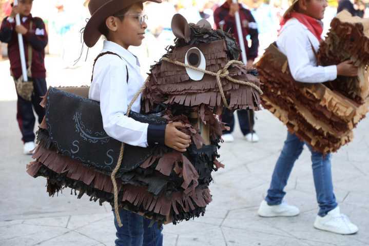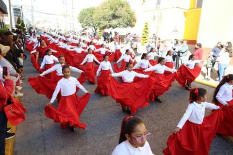 Al finalizar el homenaje, dio inicio el tradicional desfile cívico, con la participación de 15 escuelas de nivel primaria, que llenaron las calles de colores, tradición e historia. Los estudiantes presentaron tablas rítmicas, pirámides humanas y diversas rutinas deportivas, luciendo vistosos disfraces que representaban pasajes y figuras emblemáticas de la Revolución Mexicana.