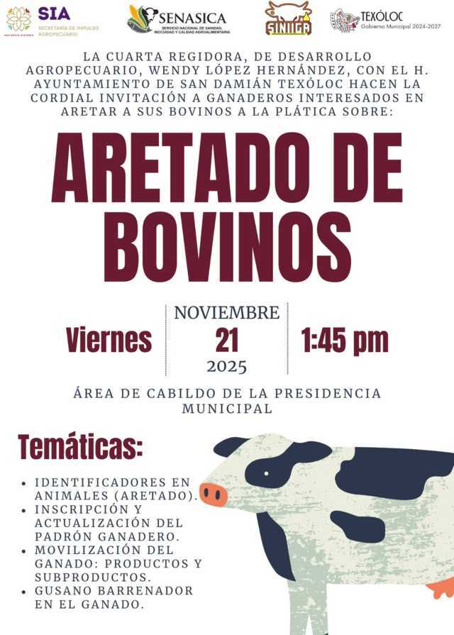 Conoce más sobre técnicas de mejoramiento y cuidado de ganado a través de esta plática sobre Aretado de Bovinos.
