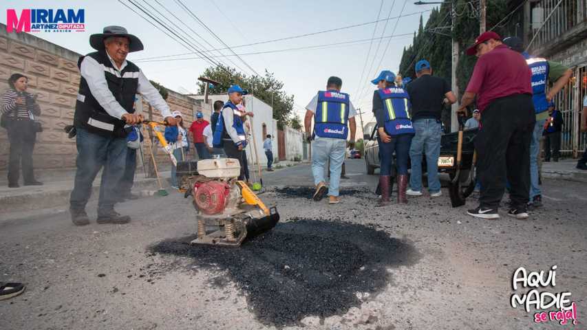 Totolac, Tlax., Con gran éxito se llevó a cabo la quinta Jornada de Bacheo Intermunicipal, impulsada por la diputada Miriam Martínez Sánchez, actividad con la que se superó la cifra de 300 baches tapados en distintos municipios del estado.