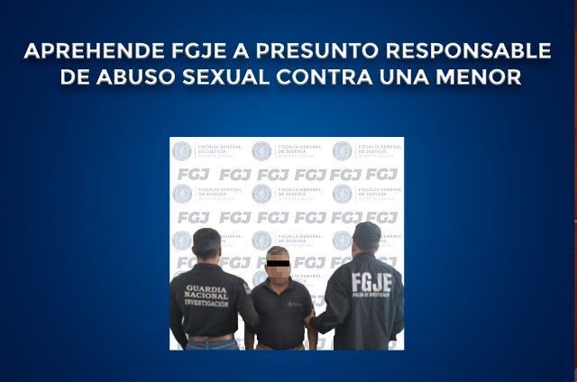 Como resultado del trabajo de inteligencia realizado por la Policía de Investigación, la Fiscalía General de Justicia del Estado (FGJE) aprehendió a Cosme N., por el delito de abuso sexual en agravio de una menor de edad.